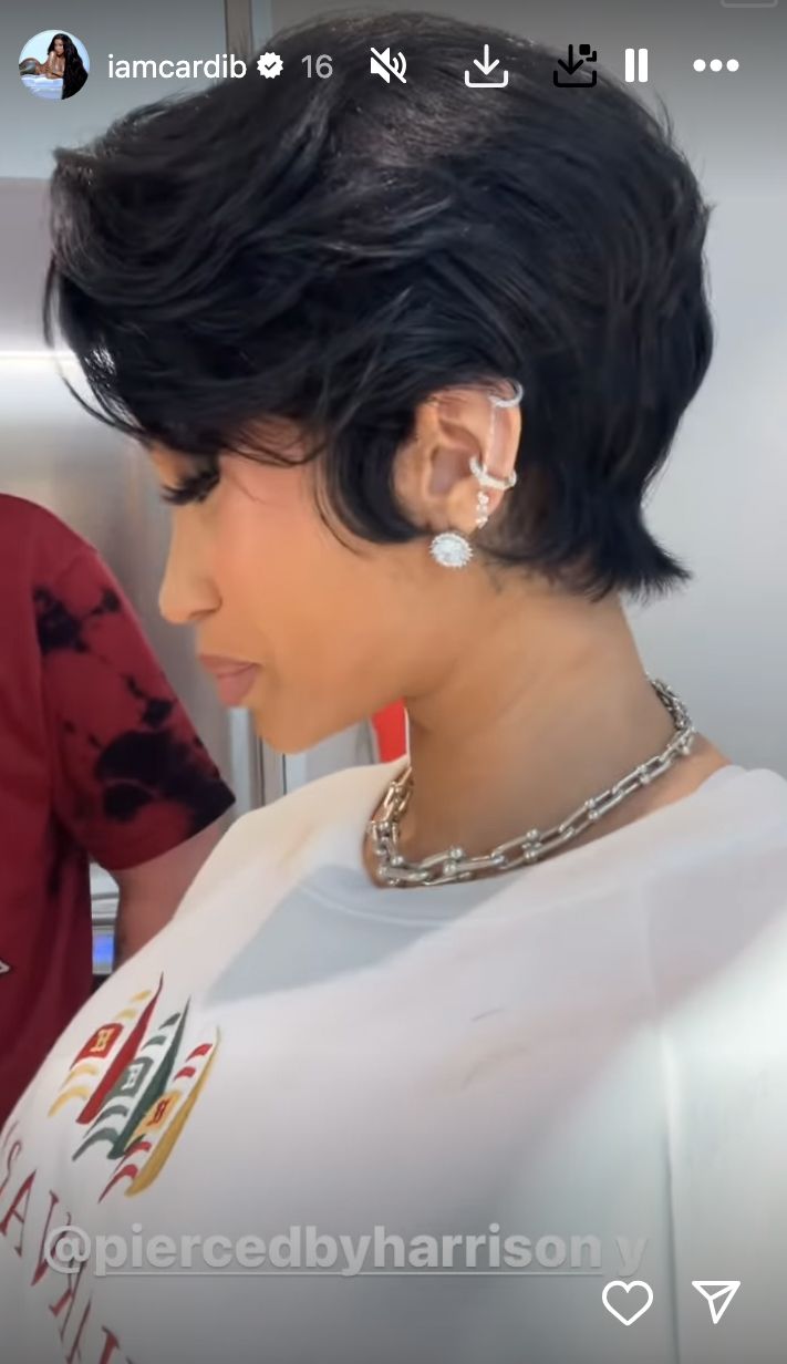 On Instagram Stories, Cardi B shared a closer look at her hairstyle while showing off a new piercing.
