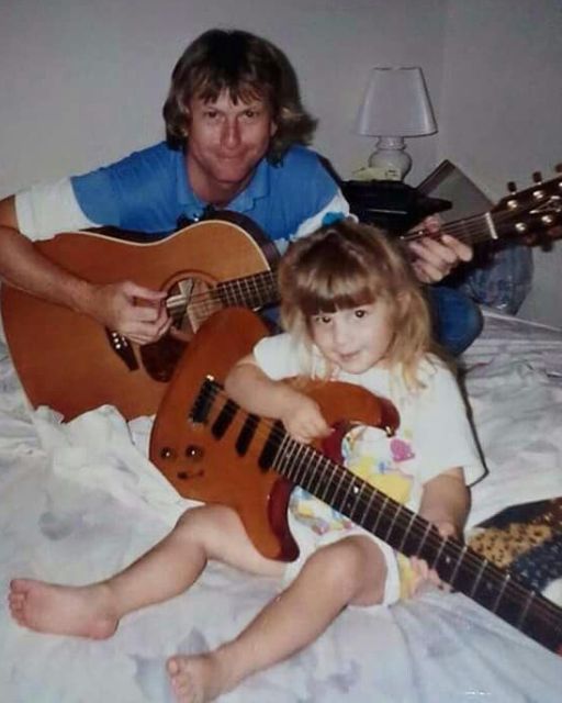 That’s me, maybe five years old, on my uncle Darrel’s bed, both of us holding guitars. I remember the exact moment—how his calloused fingers helped mine find the G chord, how he laughed when I tried to strum like a rockstar and dropped the pick between the strings.
