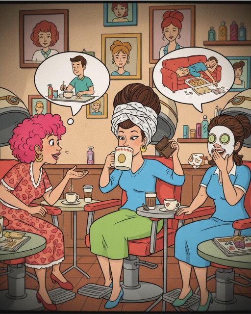 In a quaint beauty parlor, you’ll often find lively conversations that go beyond mere discussions about hair and makeup. On this particular day, three women are sharing a heartfelt dialogue, connecting through their experiences of married life. They are talking about various aspects of life, but the most intriguing part of their conversation revolves around their husbands.