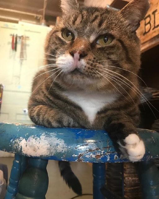 STRAY CAT DECIDES TO BE “SECURITY GUARD” FOR THE STORE THAT FED HER DURING BAD WEATHER