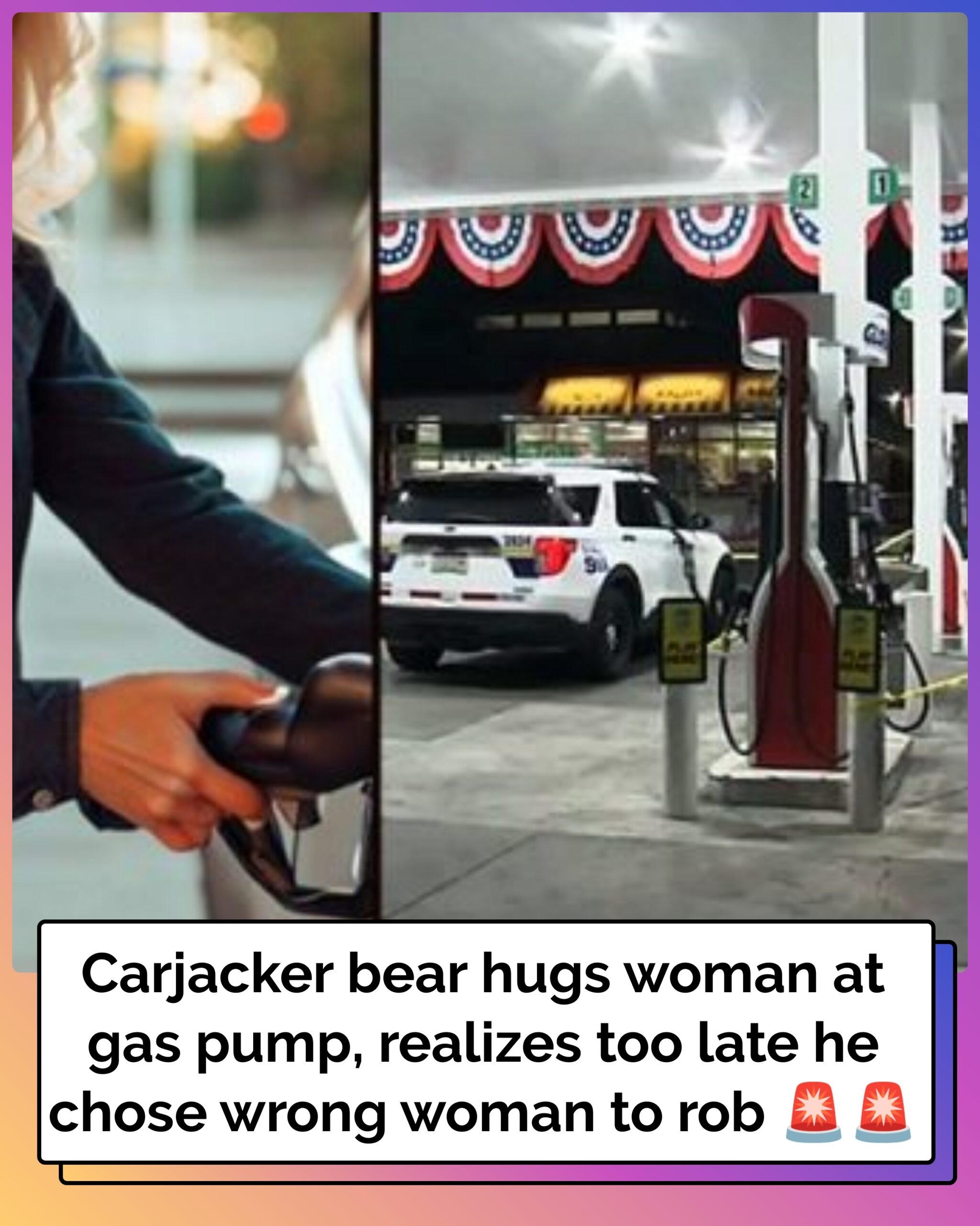 Carjacker Bear Hugs Woman At Gas Pump, Realizes Too Late He Chose Wrong Woman To Rob