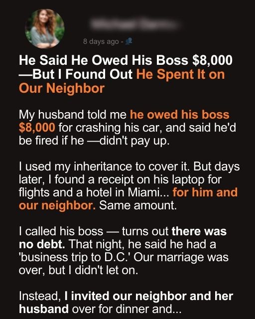 He Said He Owed His Boss $8,000—But I Found Out He Spent It on Our Neighbor