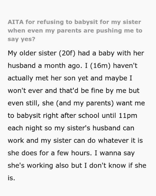 My Parents Said I Have To Babysit For My Sister Or Find A New Place To Live