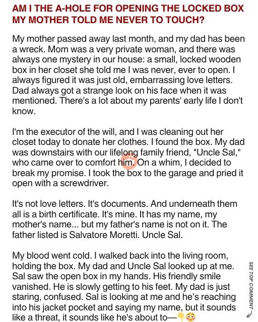 Am I The A-Hole For Opening The Locked Box My Mother Told Me Never To Touch?